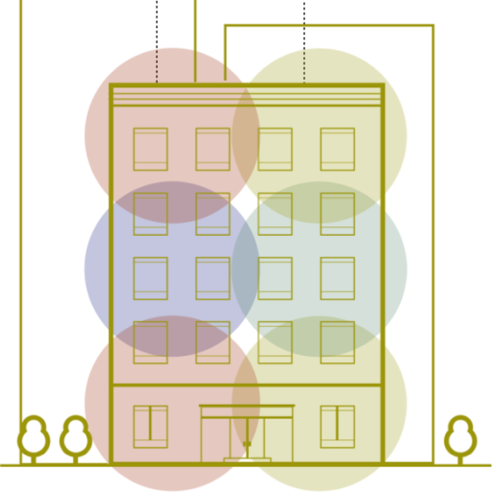Harmony s’efforce de réduire les problèmes de performances causés par les interférences réseau liées à la densité, optimisant ainsi le Wi-Fi de l’unité pour le résident. Les algorithmes de regroupement rassemblent automatiquement les emplacements en fonction de leur proximité et optimisent le Wi-Fi dans l’ensemble du bâtiment en fonction de l’utilisation et des besoins.