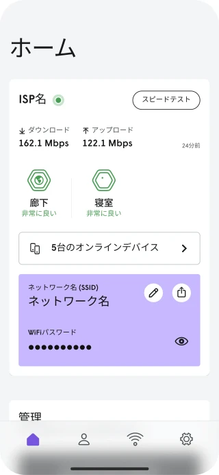 Plume Homeのすべての機能の管制塔。当社のスマートで使いやすいモバイルアプリは、高いレベルのエンゲージメントを実現するように構築されています。加入者が多くの機能を使えるようになれば、事業者のサポートコスト低減につながります。
