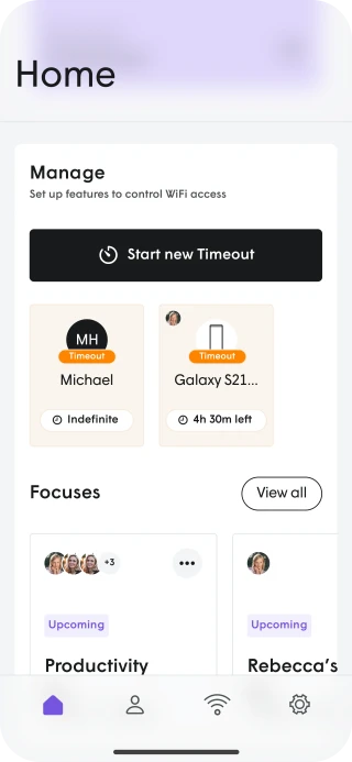 Intuitive tools for managing users, devices, and internet access. Parents can assign devices to people to set access levels, set Focus schedules, and quickly freeze devices. Advanced parental controls allow users to limit screen time for each person or device on the network and filter for age-appropriate content for children and teens.